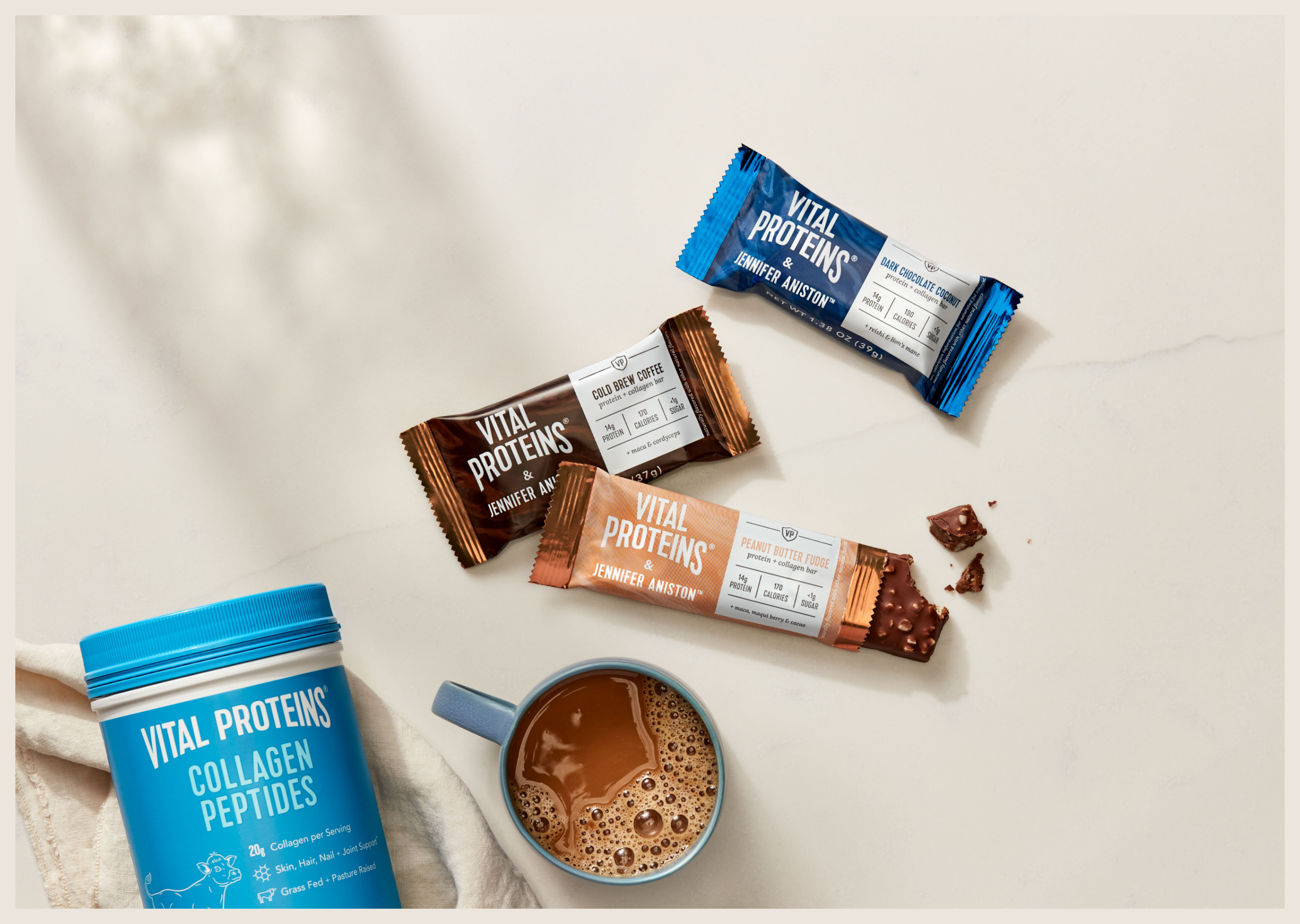 Jennifer Aniston joined the Vital Proteins® team as Chief Creative Officer in 2020. Since stepping into this role, the award-winning actor has helped to bring Vital Proteins’ mission — empowering others to live fuller, more vibrant lives — to the world. And now, Aniston has collaborated with Vital Proteins to put her own unique spin on an exciting new product—Vital Proteins® & Jennifer Aniston™ Collagen and Protein Bars.